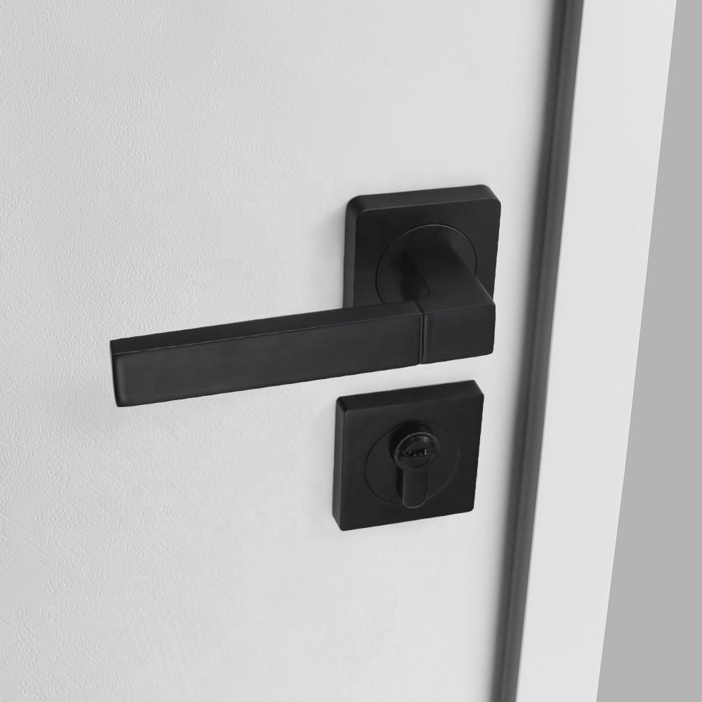 Stylish square black aluminium lever handle for wooden interior doors, ideal for homes and toilets.